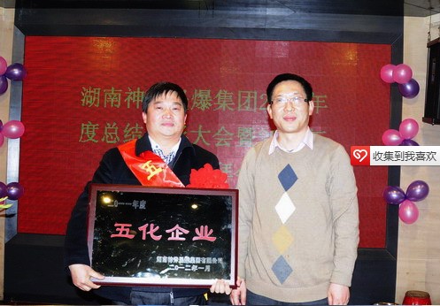 集团党委书记奉明主持2011年度总结表彰会,总经理贾永福和纪委书记、工会主任李永兴分别宣读集团“三好三高五化”和党风廉政建设表彰决定。集团2011年度“三好员工”吴祥辉、胡美华、孙海敏、文莉、李建雄、谭跃国、吴旭东、匡俊树、陶学军、唐拔,“三高管理者” 孙文、肖峰、费汉强,“五化企业”醴陵公司,“党风廉政建设先进单位”向红公司、林之神公司,共9个单位13人受到表彰。董事长李建华亲自为“五化企业”获得单位醴陵公司颁奖。